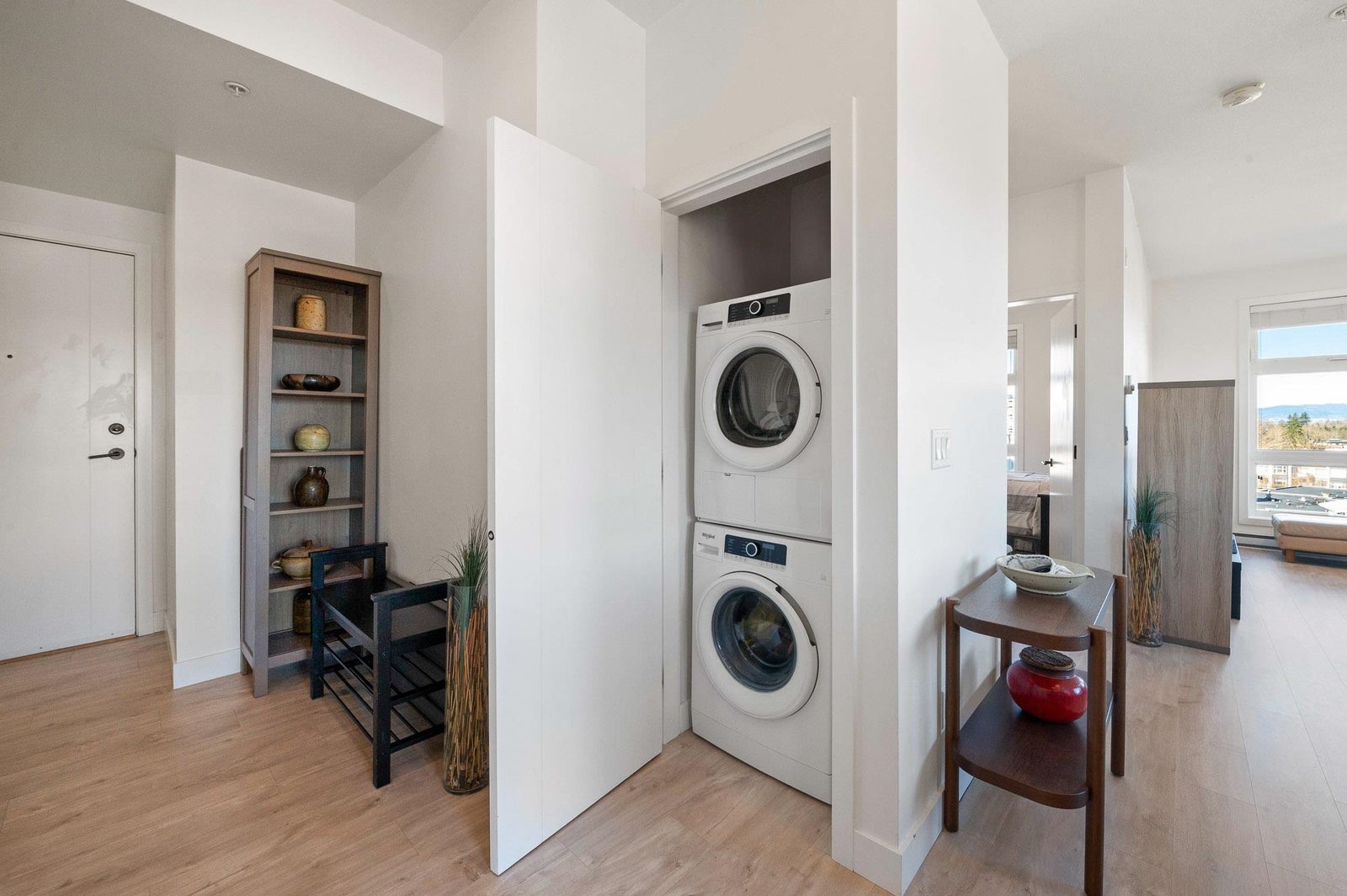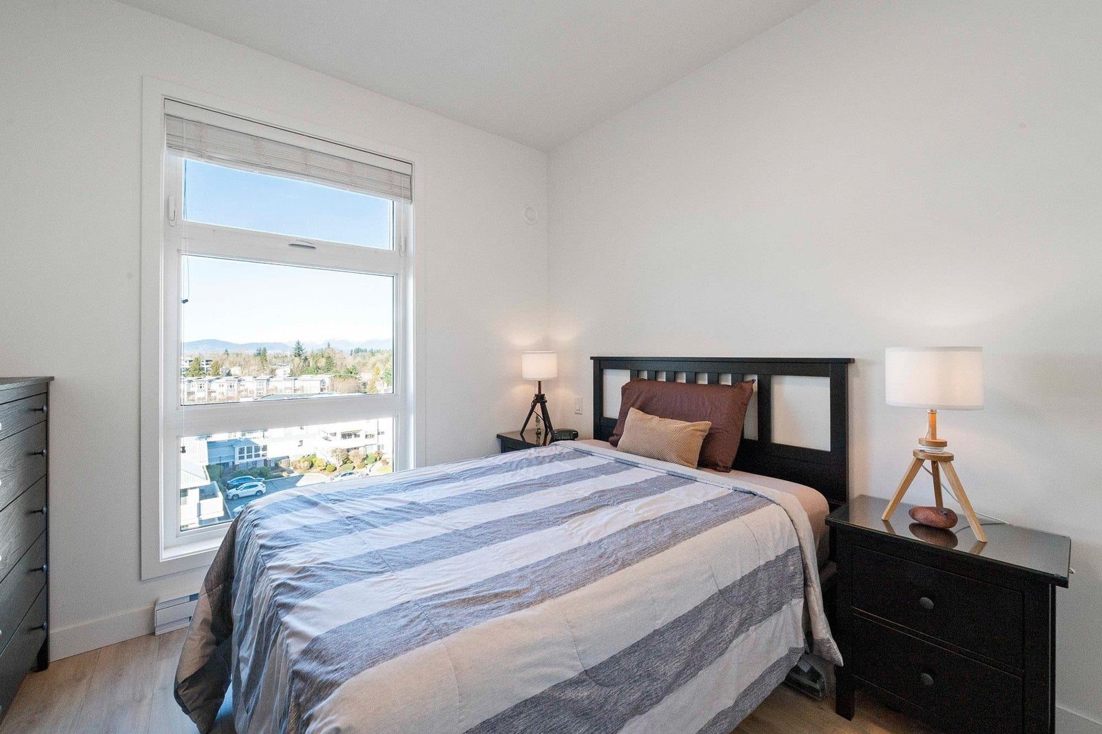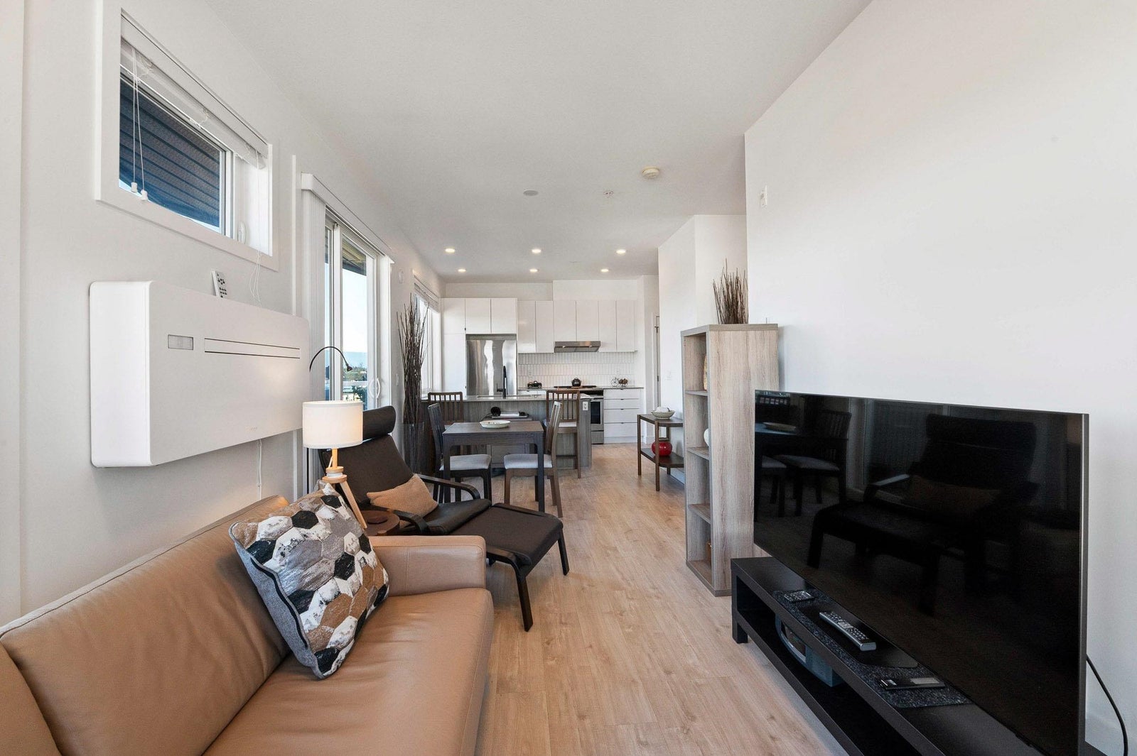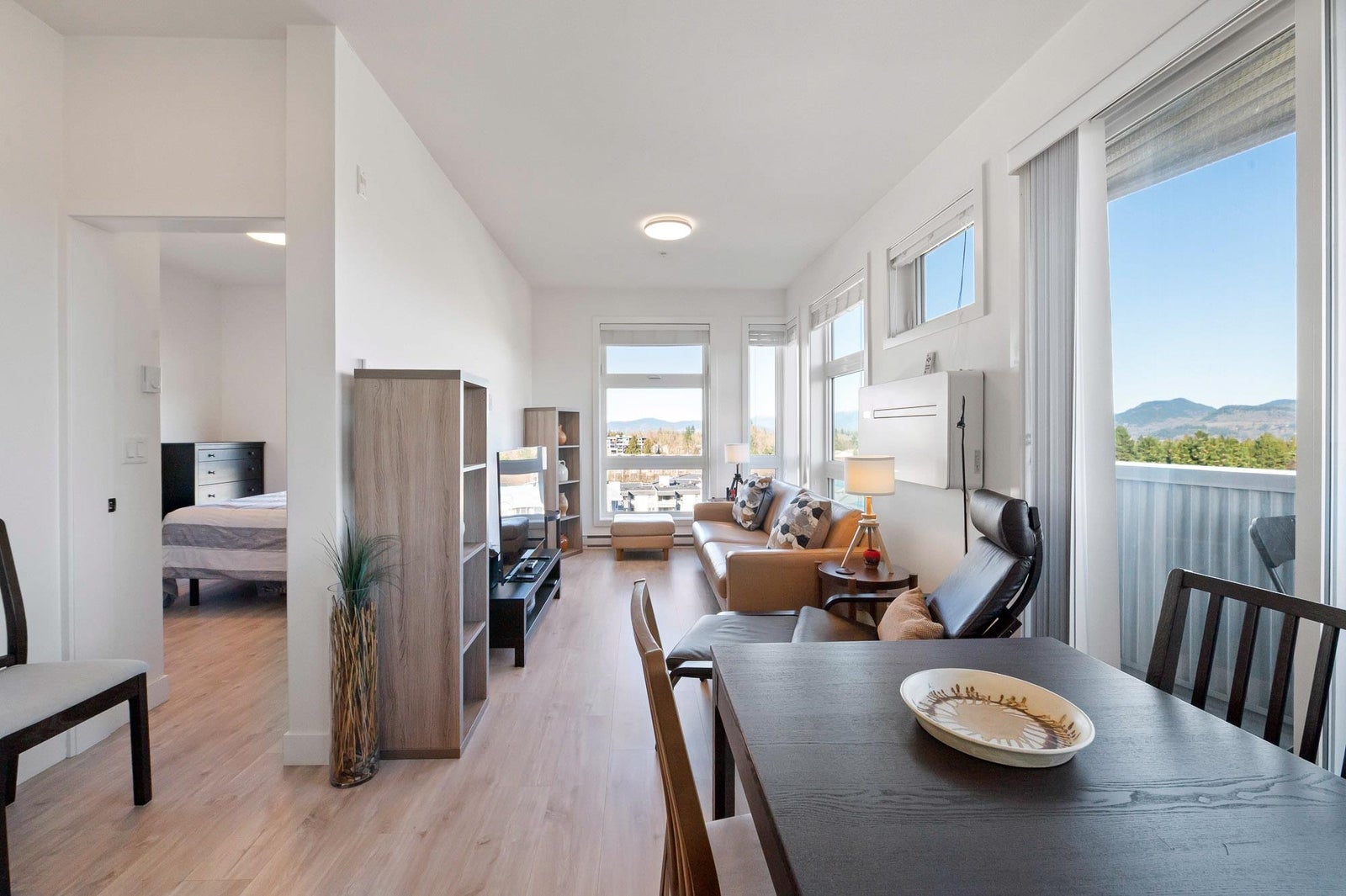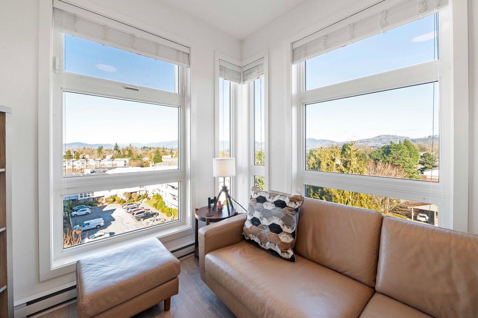 Penthouse living at The Court. Stunning Corner Unit with 180+ unobstructed views to enjoy your morning coffee. Amazing views from every room of Snow Capped Mountains to Mount Baker and beyond. Enjoy the solitude of top-floor privacy in this bright 1 bed, 1 bath home with floor-to-ceiling windows, 9' ceilings, and an open-concept 630 sq ft layout. One of Abbotsford's finest one bedroom condos. Modern kitchen with quartz countertops, stainless steel appliances and a large island. Brand-new A/C/Heat Pump. Upgraded bath fixtures. Two large, secured parking stalls including EV charger, plus an oversized storage locker. Steps to restaurants, cafes, shopping, transit, recreation, Mill lake, Hospital and Hwy. 1. Ideal for first-time buyers or downsizers. Call today for your private viewing.