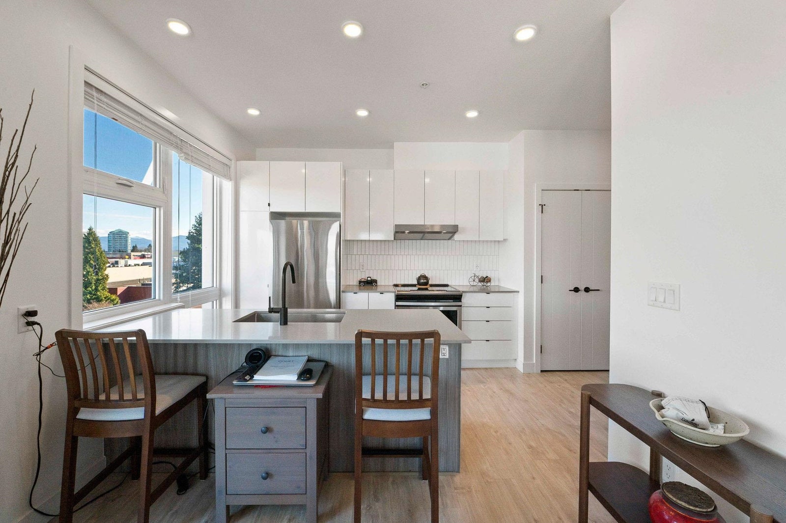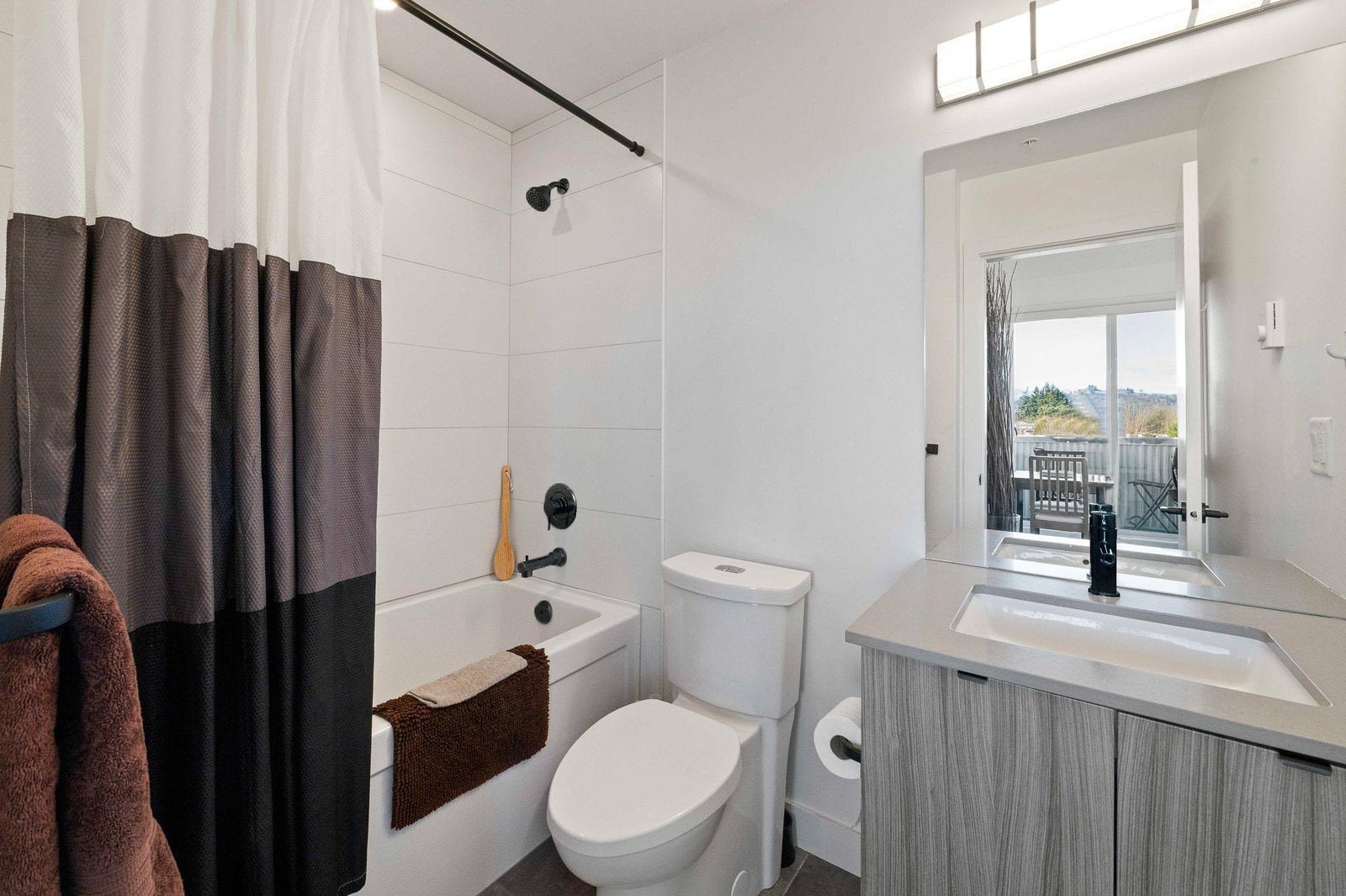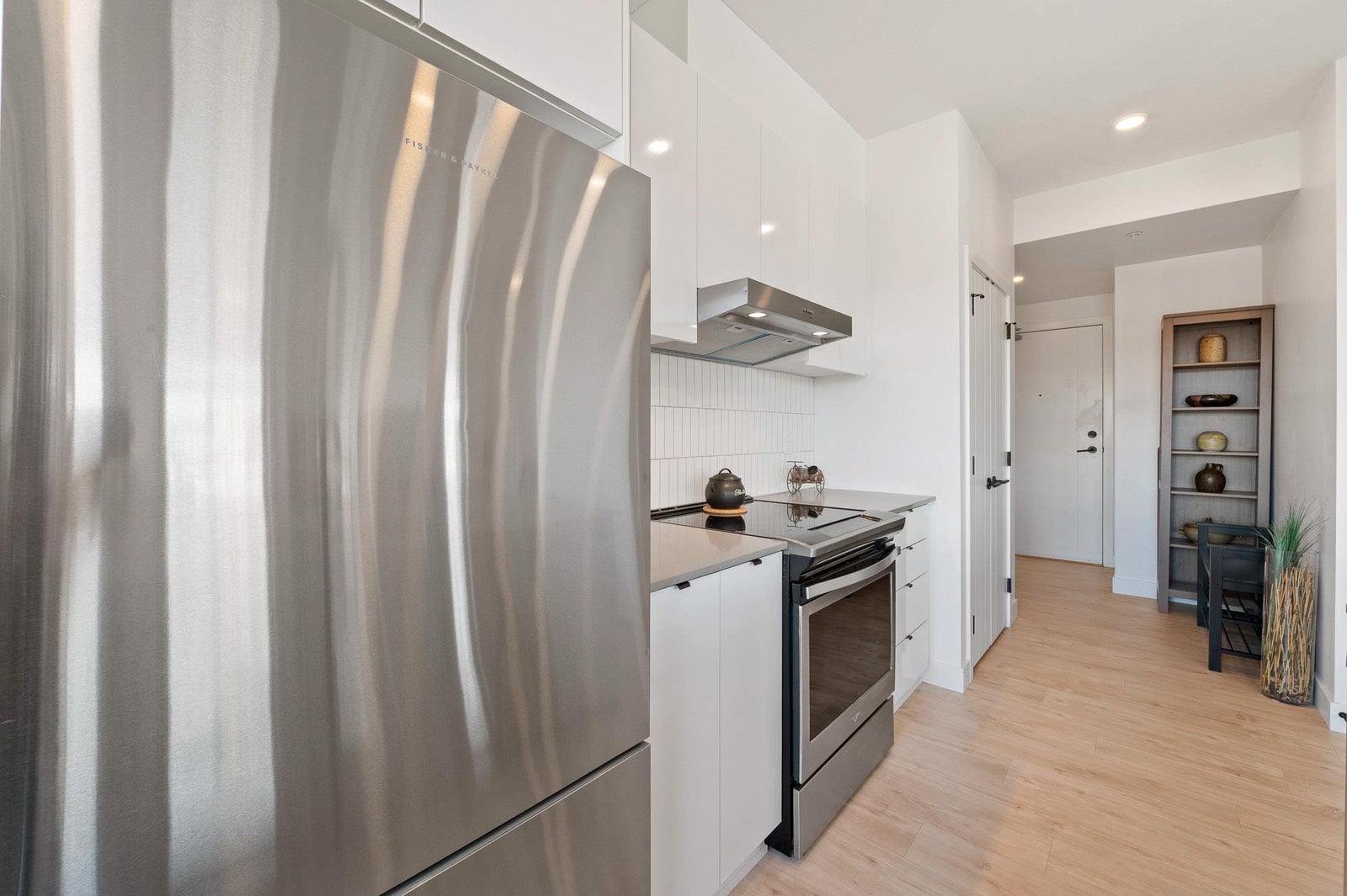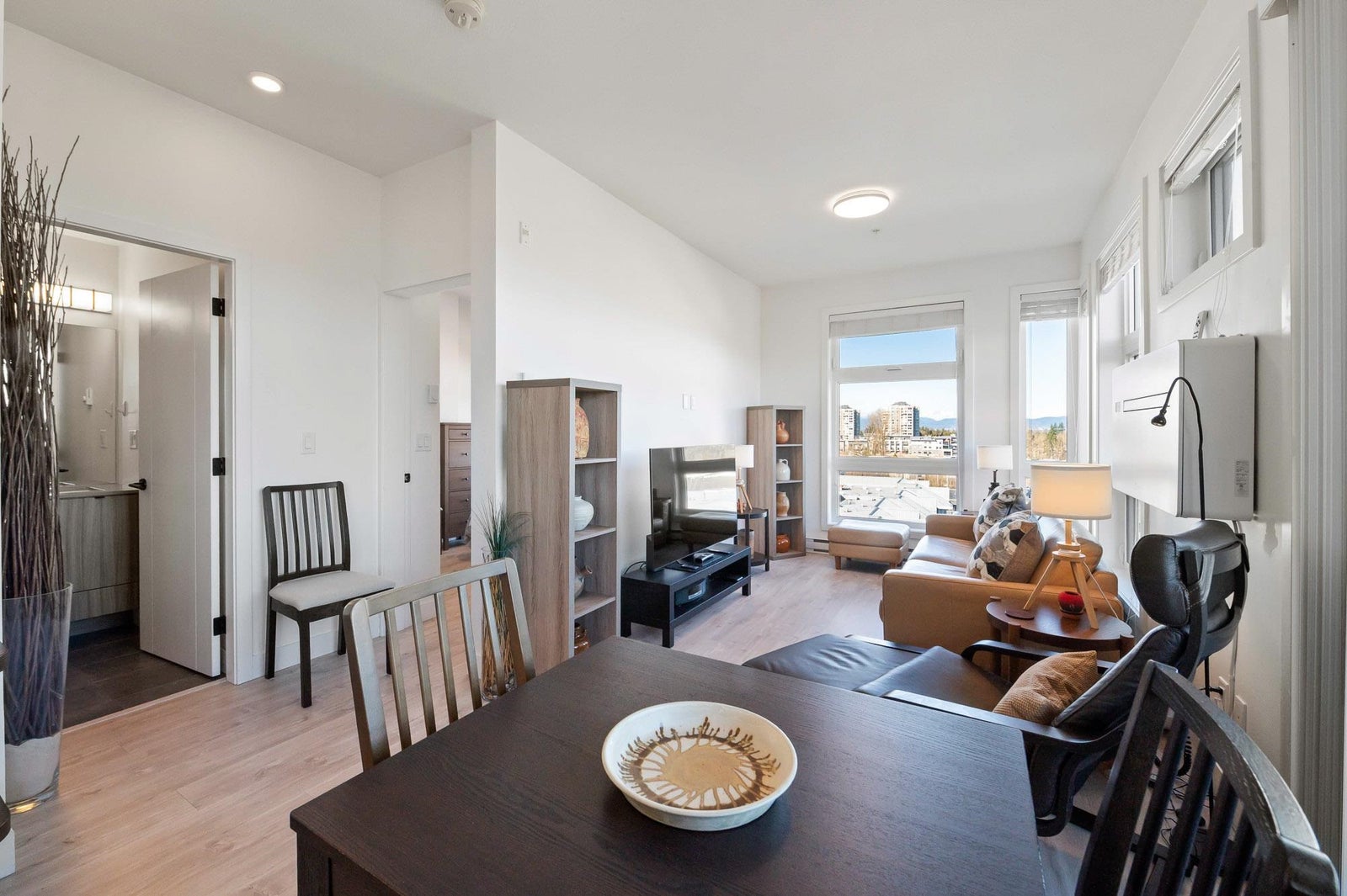 Penthouse living at The Court. Stunning Corner Unit with 180+ unobstructed views to enjoy your morning coffee. Amazing views from every room of Snow Capped Mountains to Mount Baker and beyond. Enjoy the solitude of top-floor privacy in this bright 1 bed, 1 bath home with floor-to-ceiling windows, 9' ceilings, and an open-concept 630 sq ft layout. One of Abbotsford's finest one bedroom condos. Modern kitchen with quartz countertops, stainless steel appliances and a large island. Brand-new A/C/Heat Pump. Upgraded bath fixtures. Two large, secured parking stalls including EV charger, plus an oversized storage locker. Steps to restaurants, cafes, shopping, transit, recreation, Mill lake, Hospital and Hwy. 1. Ideal for first-time buyers or downsizers. Call today for your private viewing.